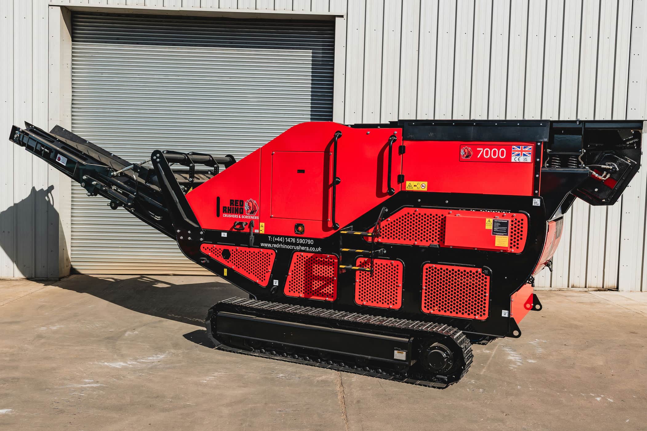 Mobilní drtič stavební suti Red Rhino 7000 Plus je ideálním strojem pro stavební firmy hledající recyklační zařízení pro vlastní odpad i pro poskytování služeb třetím stranám. 7000+ je výkonný a přitom stále kompaktní a snadno přepravitelný stroj osazený vibrační násypkou s grizzly roštem pro bypass jemného materiálu a senzorem zaplnění drtící komory. Špičkové komponenty jako je motor Kubota nebo hydraulika Danfoss a robustní konstrukce vlastní výroby zajišťují dlouhodobý spolehlivý provoz stroje.
